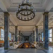 ![]() Главное здание библиотеки (1928—1958, арх. В. Г. Гельфрейх, В. А. Щуко и др.); на переднем плане — памятник Ф. М. Достоевскому (1997, скульп. А. И. Рукавишников, арх. М. М. Посохин) | |