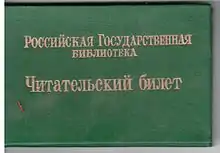 Росси́йская госуда́рственная библиоте́ка (ФГБУ РГБ) — национальная библиотека Российской Федерации[5], крупнейшая публичная библиотека в России и континентальной Европе и одна из крупнейших библиотек мира, расположенная в Москве; ведущее научно-исследовательское учреждение в области библиотековедения, библиографии и книговедения, методический и консультативный центр российских библиотек всех систем (кроме специальных и научно-технических), центр рекомендательной библиографии.