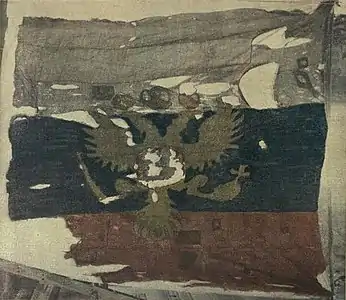 ![]() Знак на кивера Гвардейского флотского экипажаКормовой (Андреевский) флаг кораблей Российского императорского флота. | |