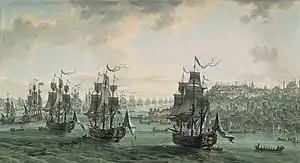 В мае 1734 года, когда в ходе войны за польское наследство русский флот под командованием Томаса Гордона вышел в море для осады Данцига, в его составе насчитывалось 14 линейных кораблей, 5 фрегатов, 2 бомбардирских корабля и мелкие суда, причем за два месяца, прошедших с начала войны, флот увеличил число боеготовых линейных кораблей и фрегатов с 10 до 19[6].