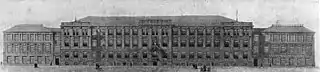 Закладка Московского промышленного училища (МПУ) произошла только в конце 1890-х годов. Изначально строительство училища планировалось на Волхонке, на территории Колымажнова двора. Впоследствии это место отвели для Музея изящных искусств, а МПУ выделили новый участок в 4000 квадратных саженей на Миусской площади[10][11]. 18 ноября 1896 года была учреждена Особая строительная комиссия для возведения зданий Промышленного училища, архитектором которой был Максим Геппенер, а председателем — геолог Александр Крылов, с 30 декабря того же года назначенный первым директором МПУ. Согласно проекту, комплекс зданий включал трёхэтажный училищный дом (в настоящее время — выходящая на Миусскую площадь часть Главного корпуса РХТУ), трёхэтажный дом для преподавателей и служителей (сейчас — детский технопарк «Менделеев-центр»), а также одноэтажный корпус для служб МПУ[13][12].