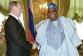 23 октября 2019 г. на полях саммита и экономического форума «Россия — Африка» в Сочи состоялась двусторонняя встреча президента России Владимира Путина и нигерийского президента Мохаммаду Бухари. Форум посетила внушительная нигерийская делегация, в которую помимо президента вошли министр иностранных дел Джефри Онеяма, министр нефтегазовых ресурсов Тимипре Силва, министр транспорта Ротими Амаечи и др.