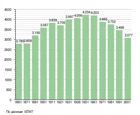 Население составляет 2938 человек (2008 г.), плотность населения составляет 62 чел./км². Занимает площадь 47 км². Почтовый индекс — 16010. Телефонный код — 010.