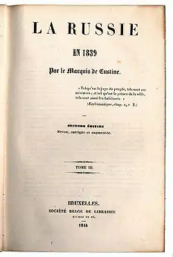 - George F. Kennan, The Marquis de Custine and His Russia in 1839. London 1972.