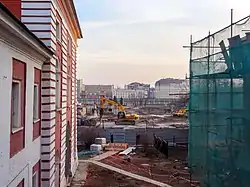 К началу XX века район Зарядья превратился в трущобы. В ходе Сталинской реконструкции Москвы 1930-х годов его значительно перестроили: в 1936—1937 годах снесли ветхую малоэтажную застройку исторического района, в том числе часть Китайгородской стены. В 1934 и 1936 годах провели конкурсы на проект строительства на этом месте здания Наркомата тяжёлой промышленности, но проект так и не был реализован в связи с упразднением ведомства в 1939-м. Вместо него в 1940-м решили возвести второе здание Совета народных комиссаров по проекту архитекторов братьев Весниных, работа по подготовке строительной площадки встала из-за начала Великой Отечественной войны[5][6].