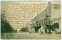 Трехэтажный кирпичный дом на Большой Садовой улице в Ростове-на-Дону (доходный дом К. В. Чарахчианца) был построен в начале XX века. В центре здания, над парадным входом и по бокам, были устроены балконы. Здание украшала лепнина, венчающий карниз, пилястры, акротерий, барельефы. Первоначально третий этаж здания занимала гостиница. Здесь же находилось кафе-театр «Марс», ранее театр назывался «Пале-де-Кристаль», на первом этаже работали магазины.