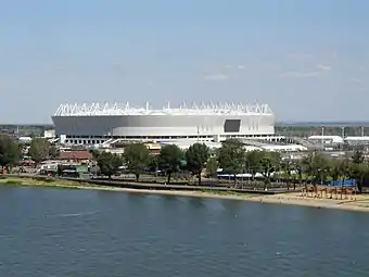 Стадион построен на левом берегу Дона, неподалеку от Гребного канала.