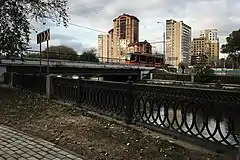 Трамвайная линия, проходящая по мосту, используется 17-м маршрутом.