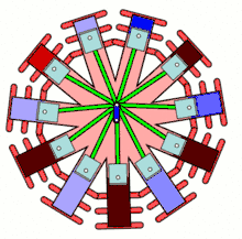 Конструктивно двигатель представлял собой звезду с нечетным количеством цилиндров (обычно 7 или 9) с последовательным воспламенением в цилиндрах через один для обеспечения повышенной плавности рабочего процесса. Двигатели с чётным количеством цилиндров, как правило имели схему двойной звезды.
