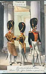 - наряд почётных караулов при выходах, торжествах и празднествах в высочайшем присутствии[3], и в различных дворцовых зданиях;