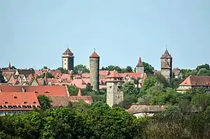 - Городская стена с десятью башнями, построенная преимущественно в промежутке между 1360 и 1388 годами. Это одна из немногих городских стен Центральной Европы, дошедших до XX века без значимых утрат. Аналоги меньшей протяжённости сохранились в Нёрдлингене и Динкельсбюле.