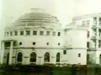 | Терапевтический корпус областной больницы в 1940 году. Ротонда на снимке слева. | Ротонда до войны. | Ротонда во время войны: немецкие войска у здания. |