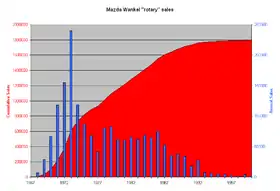 Mazda в полной мере стала привержена к роторным двигателям после энергетического кризиса 1970-х годов. Компания чуть было не ушла полностью от поршневых двигателей в 1974 году, что едва не привело к её краху. Переход на трехсторонний подход (поршневые бензиновые и дизельные, и роторные двигатели) с 1980-х годов отнёс роторные двигатели для использования на спортивных автомобилях (на RX-7 и Cosmo), строго ограниченного объёма производства. Но компания непрерывно продолжала производство с середины 1960-х годов, и был единственным производителем роторных двигателей (RX-8) до прекращения производства в июне 2012 года модели RX-8 Spirit R 2000 года, выпускаемого для внутреннего японского рынка.