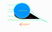 Радиальная турбина (ротор) увеличивает скорость воздушного потока над верхней поверхностью крыла независимо от скорости движения вперед летательного аппарата, так что подобная схема может обеспечить достаточную подъёмную силу при скоростях переднего хода ниже, чем скорость сваливания для обычных самолётов.