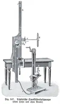 В 1905 году немецкий физик Вольфганг Геде усовершенствовал насос Гейслера — Тёплера, заменив поступательное движение вращательным, что существенно упростило использование насоса [4][5].