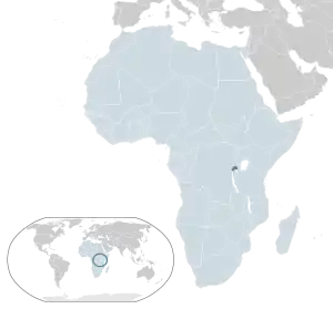Руанда расположена в центре Африки, к югу от экватора, по классификации ООН относится к региону Восточная Африка. Площадь страны составляет 26 338 км², она является одной из самых маленьких стран мира, занимая 45 место в Африке и 154 место в мире. Страна не имеет выхода к морю. Столица государства — Кигали — располагается на расстоянии 1900 километров от Атлантического океана и на расстоянии 1100 километров от Индийского[177].