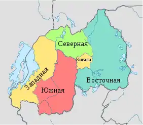 Руанда является унитарным государством[1]. С 1 января 2006 она подразделена на 5 провинций (руанда intara), которые делятся на 30 районов (дистриктов; руанда akarere)[174], делящихся на 416 секторов (руанда umurenge), состоящих из 2148 ячеек (руанда akagali), включающих в себя 14 837 отдельных населённых пунктов (руанда umudugudu) или их частей[175].