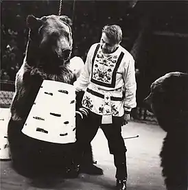 В 1940—1945 годах работал в зверинцах, затем в цирке создал аттракцион со смешанной группой хищников, работал с крупными хищниками (львы, белые и бурые медведи, тигры, пантеры, леопарды, снежный барс, доги и другие животные). Звери на арену не выходили, как обычно, через тоннель, а перелезали через клетку, поднимаясь по специальным конструкциям сначала наверх, затем спускаясь на арену, выполняли на ходу различные трюки.