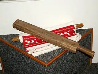 Иногда рукоятку рубеля делали полой и закладывали внутрь горошинки или другие мелкие предметы, чтобы они гремели при раскатывании.