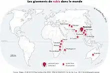 После Второй мировой войны месторождения рубина были обнаружены на Мадагаскаре, Непале, Пакистане, Таджикистане, Танзании и Вьетнаме (с 1970-80-х[9]).