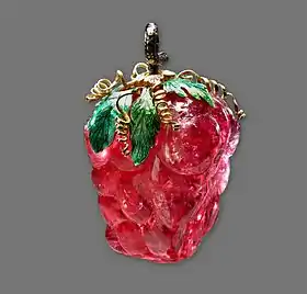 Камень розовато-малинового цвета, огранён в форме ягоды или виноградной грозди. Другие названия камня — «Красный камень» и «Большой рубин». Родиной его, по мнению академика-минералога А. Е. Ферсмана, является Бирма. Размер камня — 4 × 2,7 × 2,3 см; масса — 255,75 карат. Сверху помещается золотое ювелирное дополнение в виде виноградных листьев и усиков. Закрученный стебелёк образует петельку-крепление. Листья покрыты зелёной эмалью, стебелёк — чёрной и белой.
