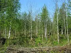 - Вырубка — лесосека или часть её, на которой древостой вырублен, а новый ещё не сомкнулся.