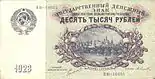 10 000 | 155×79 | зелёный | герб СССР, номинал цифрами и прописью, пояснительные надписи, Московский кремль |
