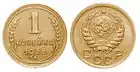 полкопейки | 16 | 1,64 | медь | рубчатый | номинал, год чеканки | надпись «СССР», лозунг «ПРОЛЕТАРИИ ВСЕХ СТРАН, СОЕДИНЯЙТЕСЬ! •» |