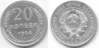 20 копеек | 21,84 | 3,6 | 1924 1925 1927-1931 | ||||||