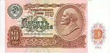 | Белорусский рубль | 10 советских рублей[26] 1000 старых рублей 10000 старых рублей |