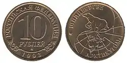 - 10 разменный знак 2005 года. Арктикуголь, остров Шпицберген. Цунами - Юго-Восточная Азия. Proof. perevoznikov-coins.ru. Дата обращения: 24 июня 2018.