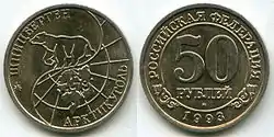 - 10 — «Гибель российской атомной подводной лодки „Курск“ в Баренцевом море», с надписью «Разменный знак» и без неё (три варианта, не считая пробных в трёх металлах — латуни, алюминии, серебре) — «Подъём подлодки Курск Баренцево море 10 октября», тир. 2200 шт.