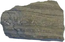 - Руда полосчатая — состоящая из тонких слоёв (полос), существенно различающихся по составу, по крупности зёрен или по количественным отношения минералов.