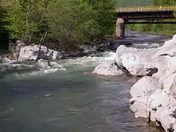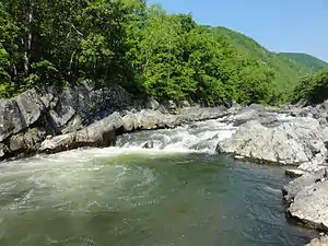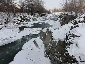 Река Рудная в черте Дальнегорска. Известняковые скалы в русле. | |