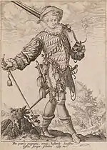 В XVI веке на основе боевого опыта выработался тип мушкета — дульнозарядного гладкоствольного фитильного ружья массой 6—8 кг, калибром около 22 мм при массе пули около 50 г. Стрельба из мушкета велась преимущественно с упора — специальной подставки с рогатиной. Дальность прицельного выстрела достигала 150 м. Отдача при стрельбе была очень сильная, мушкет с принадлежностями и боезапасом имел большой вес; в мушкетёры отбирали самых крепких и рослых солдат, поэтому мушкетеры составляли не более 10 % численности полков. Большая часть солдат вооружалась аркебузами и пиками[15]. В 1624 году в Швеции был введён облегчённый (5 кг) пехотный мушкет без подставки.