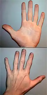 Рука́ (от праслав. *rǫka «рука», от *ronka, от *ronkā, от праиндоевр. *wronkeh₂, из *wrenk- «собирать») — верхняя конечность человека и некоторых других животных, орган опорно-двигательного аппарата, одна из главнейших частей тела. С помощью рук человек может выполнять множество действий, основным из которых является возможность захватывать предметы[4].