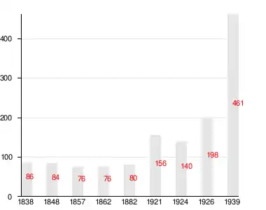 Число прихожан в 1848 году составляло 937 человек, в 1910 году — 2171 человек[33], в 1917 году — 2372 человека[34], а в 1928 году — 2460 человек[9].