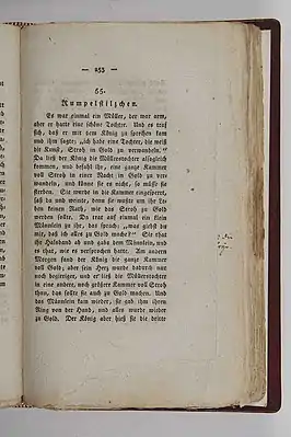 «Румпельштильцхен» (нем. Rumpelstilzchen) — сказка братьев Гримм о злом карлике, способном создавать золото из соломы, прядя её. По классификации Аарне-Томпсона[1] этот сюжет имеет номер 500: «Имя помощника»[2][3].