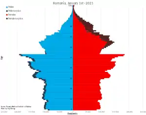 Как и в других странах восточноевропейского региона, в Румынии наблюдается сокращение численности населения. Рождаемость составляет 10,5 на 1000 человек, смертность — 12,0 на 1000 человек[16].