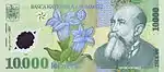 10 000 | 150×67 | зелёный | учёный-историк, писатель и политический деятель Николае Йорга (1871—1940); цветки Gentiana asclepiadea |