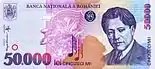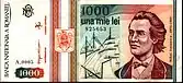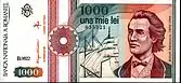1000 | 140×61 | голубой | поэт Михай Эминеску (1850—1889) | развалины Гистрии; цикорий, листья липы |