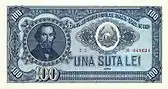 100 | 168×90 | голубой | герб Румынской Народной Республики портрет Николаэ Белческу |