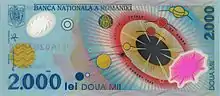 2000 | 143×63 | голубой | стилизованное изображение Солнечной системы | карта Румынии с обозначением прохождения солнечного затмения 11 августа 1999 года |