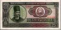50 | 145×72 | зелёный | герб Социалистической Республики Румыния; портрет первого правителя объединённой Румынии Александру Иоана Кузы (1820—1873) |