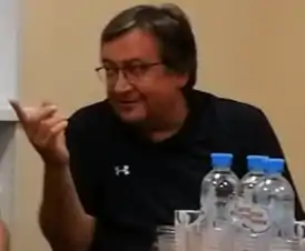 Дмитрий Бурков на фестивале Chaos Constructions'2018 - 19 августа 1991 года — во время августовского путча сотрудники сети «Релком» обеспечивают доступ (off-line, модемная связь) к сети из «Белого дома». Через сеть «Релком» в условиях блокады СМИ было распространено обращение Бориса Ельцина и репортажи о ситуации в Москве[87]. «Местные власти по стране с задержкой всего на час получали сводки у провайдеров, в результате чего быстро поняли, что, помимо движений техники, у ГКЧП ничего за душой и нет». В частности, несколько узлов UUCP и узлов др. протоколов Томска принимали оперативную информацию из столицы и немедленно (в том числе по местной телекомпании ТВ-2) распространяли по городу — с согласия руководителя области О. Э. Кушелевского. О возможном участии во всех этих процессах советских спецслужб Давидов и соавторы пишут так[61][81]: то зарубежное ПО, «что поступало по спецканалам, автоматически получало гриф и навсегда терялось в сейфах Первых отделов»; организовать массированный выход советских абонентов в Usenet «„КПСС — не мог“, „армии не до этого“» … «В США начался шум „ЦРУ сообщает — КГБ проник в Интернет“ — наивные американцы — КГБ тогда этого делать не умел» … «Справедливости ради надо сказать, что КГБ, как это помягче выразить, был в курсе и часто недоумевал» … «Более того, в начале 1991 года к Алексею Солдатову, который занимался сетью в Курчатовском Институте, пришли крайне встревоженные представители КГБ с вопросом: „Вы что решили сделать из Курчатовского Института центр международной связи?“ Солдатов предложил отключиться хоть сейчас. Удивленный отсутствием сопротивления представитель КГБ поинтересовался: „И что же будет потом?“ Солдатов ответил: „От связи отключат Белый дом и Президиум Академии наук СССР“. А уже до этого разговора Евгений Велихов подключил к сети Релком президиум АН СССР и аппарат правительства, в частности, Руслана Хасбулатова, ставшего в 1991 году Председателем Верховного Совета РСФСР. Было решено не отключать Белый дом, а узаконить сеть в Курчатовском Институте и писать инструкции» … «Вот так, между ЦРУ и КГБ, при полном неучастии государства, был создан Интернет в России. И уже в августе 1991 года из Демоса на весь мир шли репортажи с баррикад у Белого Дома». В августе 1991 года в сети «Релком» насчитывалось более 3 тысяч клиентов (UUCP-хостов) по всему СССР «от Бреста до Находки»[83]. Бардин: «Западный канал не работал. Оказалось, что зарубежные пользователи положили его, начав писать письма в поддержку „борцов за демократию“. Канал был очень слабенький. Тогда мы и придумали знаменитый режим номер один. Это означало, что все поставщики информации в Москве — люди, провайдеры, информагентства ТАСС, РИА „Новости“ и так далее — смотрят, что там за окном, и централизованно сливают нам новости в единую ленту почтовой рассылки. А людей за рубежом мы попросили замолчать, потому что главные события были у нас. Из той ленты все и узнавали, что происходит на самом деле» … «Самое важное, мне кажется, нам удалось успокоить людей, предотвратить истерику, что наступают кровавые времена»[78].