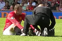 12 августа 2007 года, в первом же матче сезона 2007/08 против «Рединга», Руни получил перелом плюсневой кости стопы[108] (матч завершился без забитых голов со счётом 0:0[109]). Ожидалось, что Уэйн пропустит около двух месяцев. Но 26 августа Алекс Фергюсон заявил, что Руни может вернуться на поле уже через три недели[110].