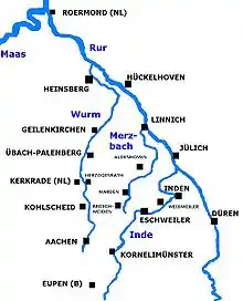 На Руре стоят города Моншау, Хаймбах, Нидегген, Дюрен, Юлих, Хайнсберг (Германия), в устье — порт Рурмонд и историческое поселение Синт-Одилиенберг (Нидерланды).