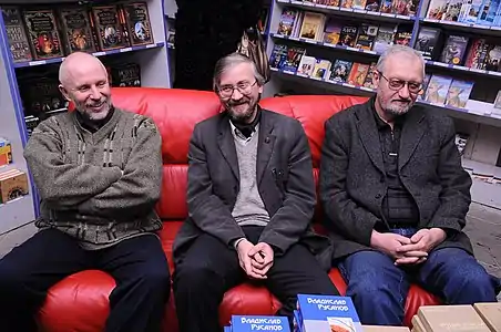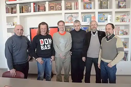 2011 год. Встреча с донецкими писателями-фантастами. Слева-направо: Михаил Белозёров, Владислав Русанов, Виталий Забирко