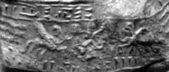 ![]() | Глиняная булла скрепляла концы верёвки, пропускаемой в петли двери, которая закрывала зернохранилище, и таким образом опечатывала зернохранилище. Для невозможности подделки буллы на ней ставилась подпись смотрителя и прокатывалась его цилиндрическая печать. На фотографии видны подписи и след цилиндрической печати. |
