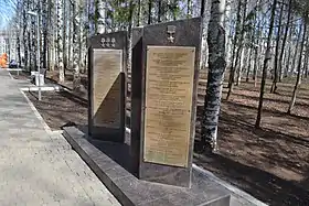 - Имя Героя выбито на гранитной стеле на Аллее Славы в парке Победы города Кирова 2019.